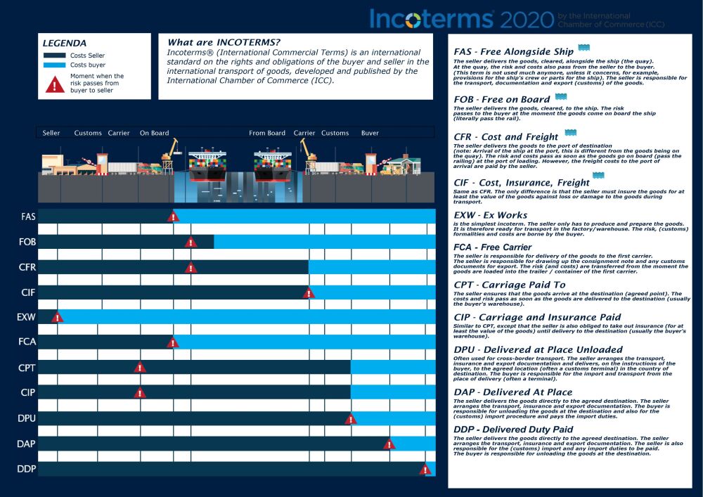 Doing business always involves risk, especially when your trading partner is on the other side of the world. Damage, loss, delays… You don’t want to leave these matters vague or open to interpretation. That’s why Incoterms exist: to make international agreements crystal clear.